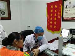 (深圳肤康医师为女环卫工看病)